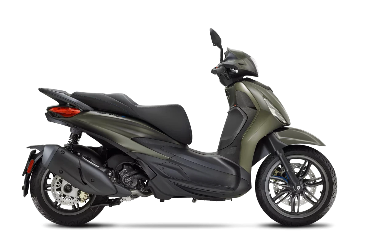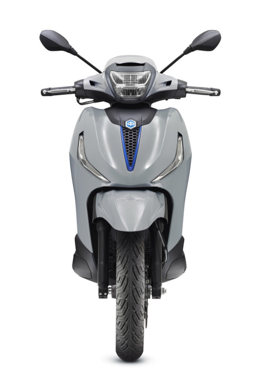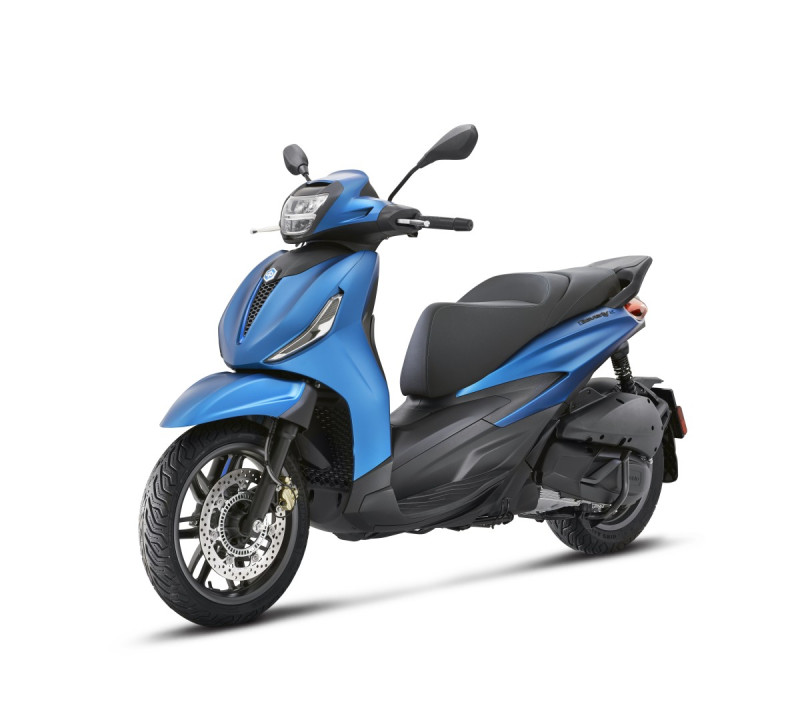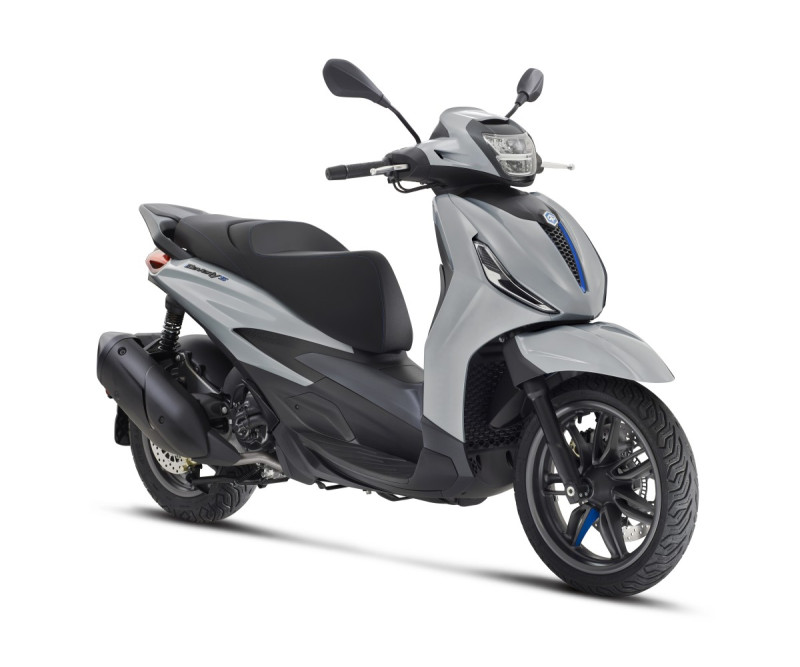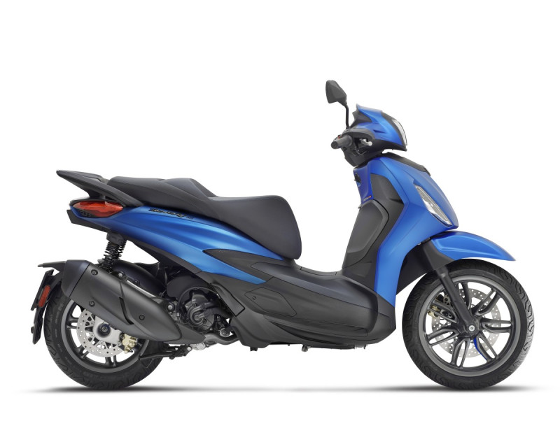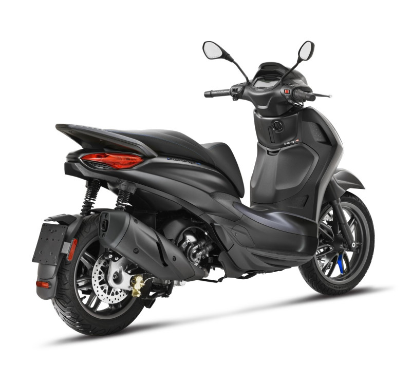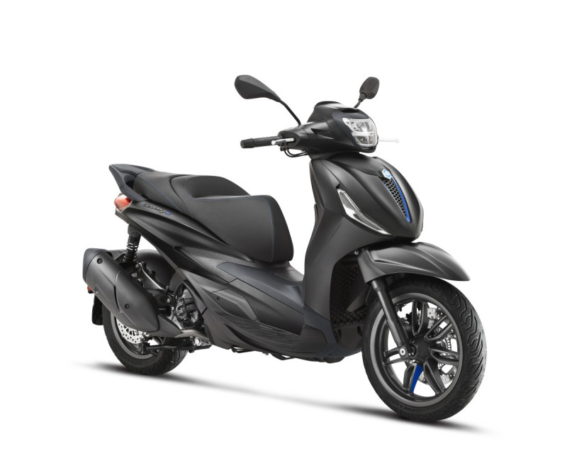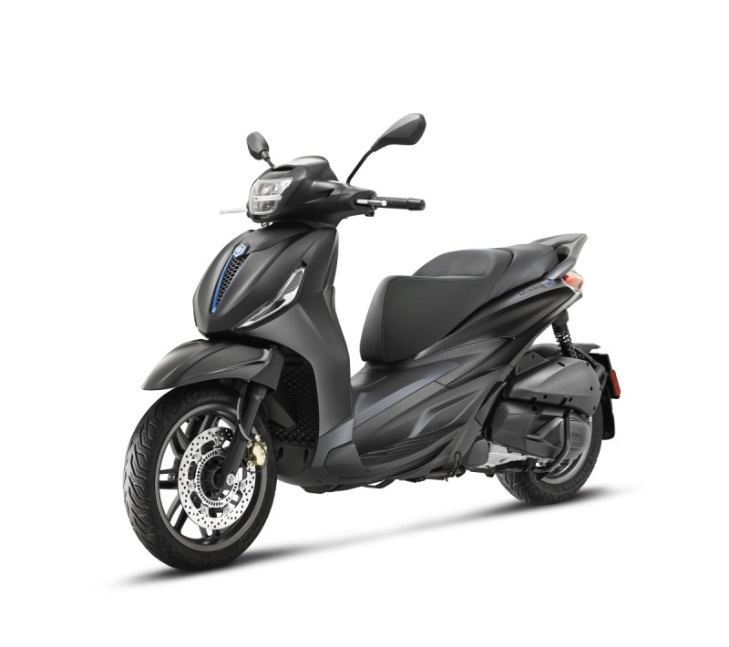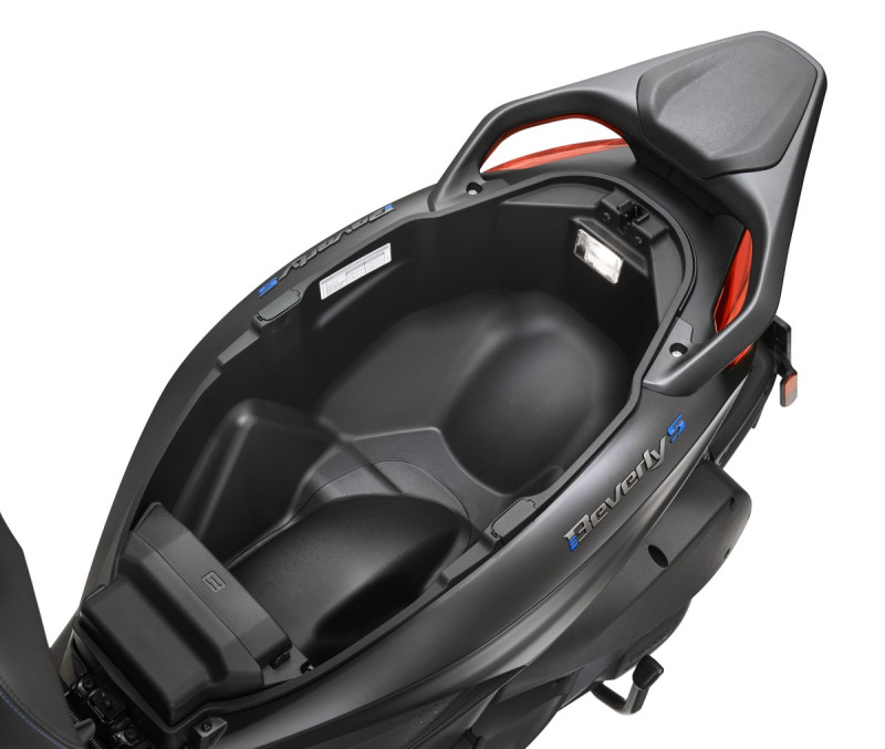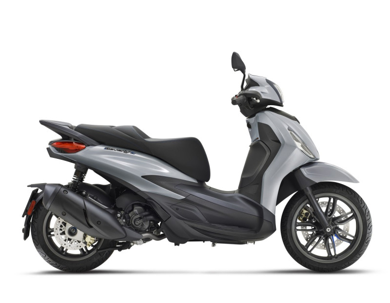 Piaggio Beverly S na prvý pohľad zaujme svojím športovým duchom, ktorý podčiarkujú matné grafitové detaily – od kolies cez zadné držadlo až po rám prístrojového panela a LED svetlometu. Dynamický charakter ešte viac zvýrazňujú modré akcenty na písmene "S" v logu, prednom kolese a ikonickej "kravate" na prednej kapotáži. Nezameniteľný predok s V-čkovým prieduchom a mriežkou v tvare včelieho plastu, štíhla zadná sekcia a dvojfarebné prešívanie sedadla spájajú športový vysokokolieskový skúter s výkonom a eleganciou GT do dokonalej harmónie.