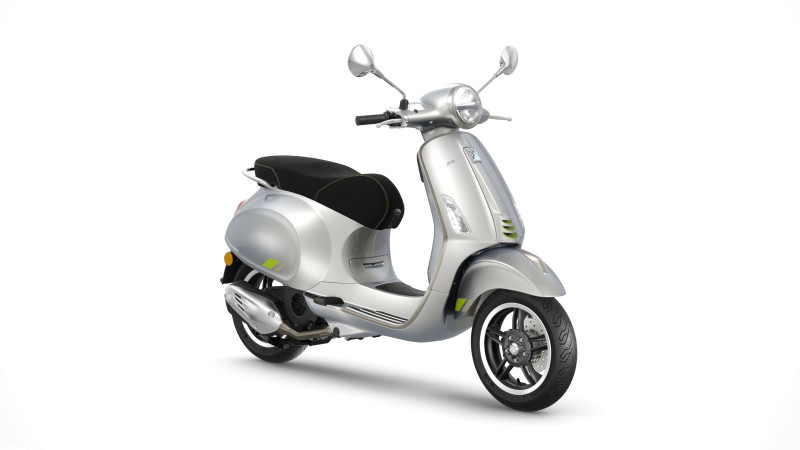 Vespa Primavera Tech vie, ako urobiť dojem. Dvojfarebné kolesá, intenzívne lesklé farby, chrómové povrchy a fluro zelené detaily - to všetko sa spája, aby moderným štýlom vyjadrilo pokrok.